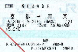 ひかり号の指定席券です。