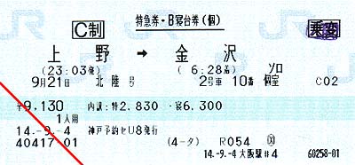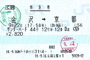 この切符は残念ながら金沢駅で回収されてしまいました。