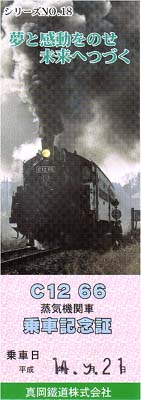 SLもおか号の乗車記念証です。