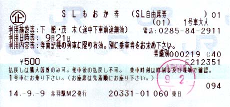 SLもおか号のきっぷです。