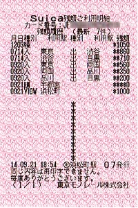 私の持っているSuicaの利用明細です。